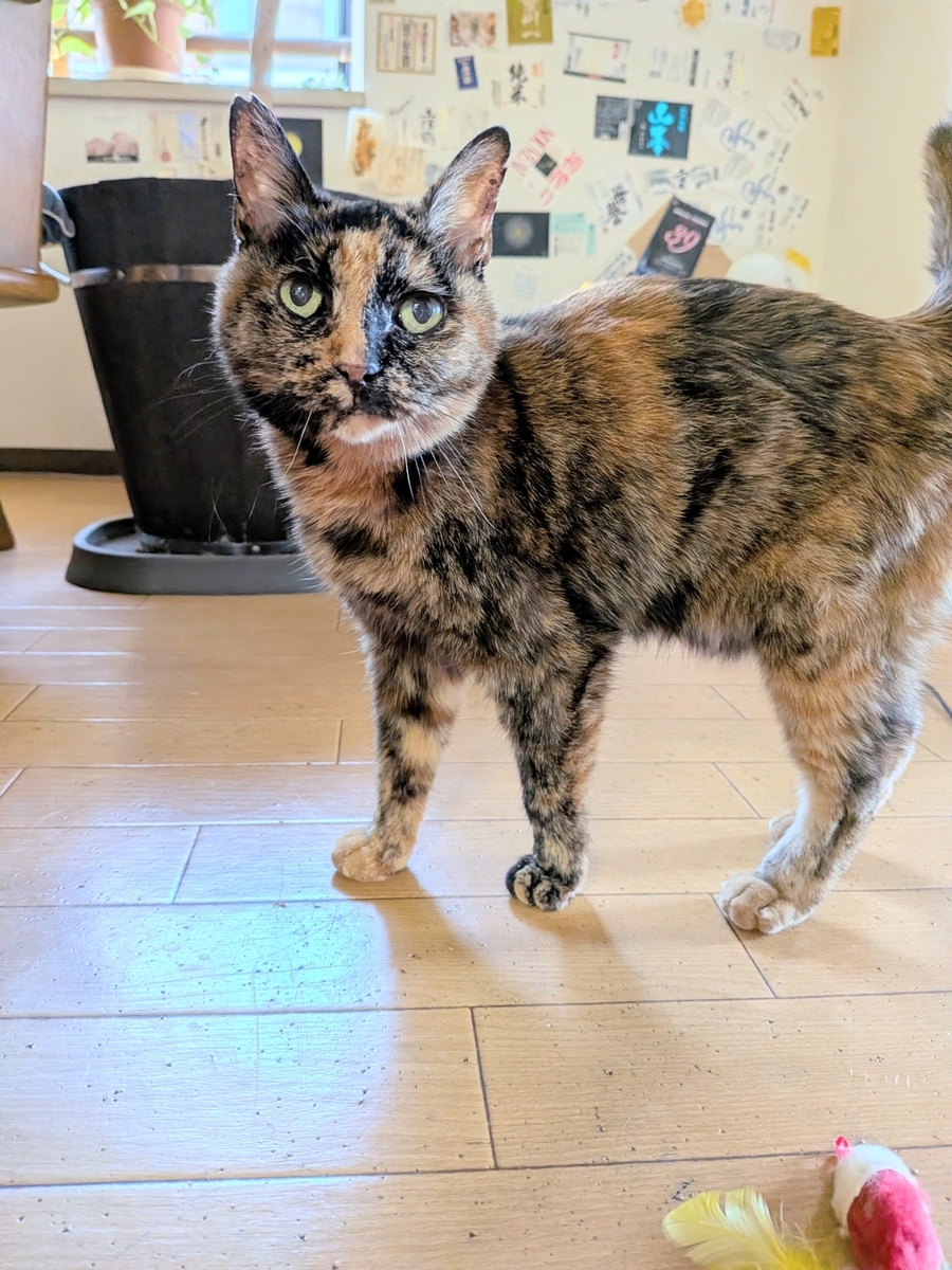 ↑そばにいたくてついてくるんだけど、キッチンマットは洗いものしていると水が飛んだりするので、結局逃げていくやつ